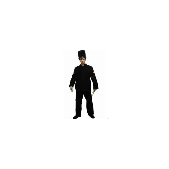 Куртка прямого силуэта с потайной центральной застежкой справа налево на 5 пуговиц. Форма рукавов соответствует основному положению рук сварщика при выполнении работ. Куртка имеет вентиляционные отверстия под проймами в боковом шве и по линии настрачивания кокетки. Полочки изготовлены из спилка с цельнокроеными подбортами, отрезными бочками и внутренними боковыми карманами.